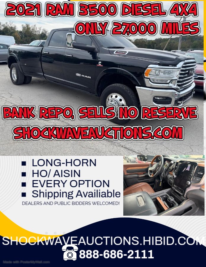 Shockwave Auctions is a nationwide auction house specializing in repossessed and commercial asset liquidation.  We offer a transparent buying experience with hundreds of detailed photos, test-drive videos, and virtual walk-around videos for every listing—so you know exactly what you’re bidding on.Â